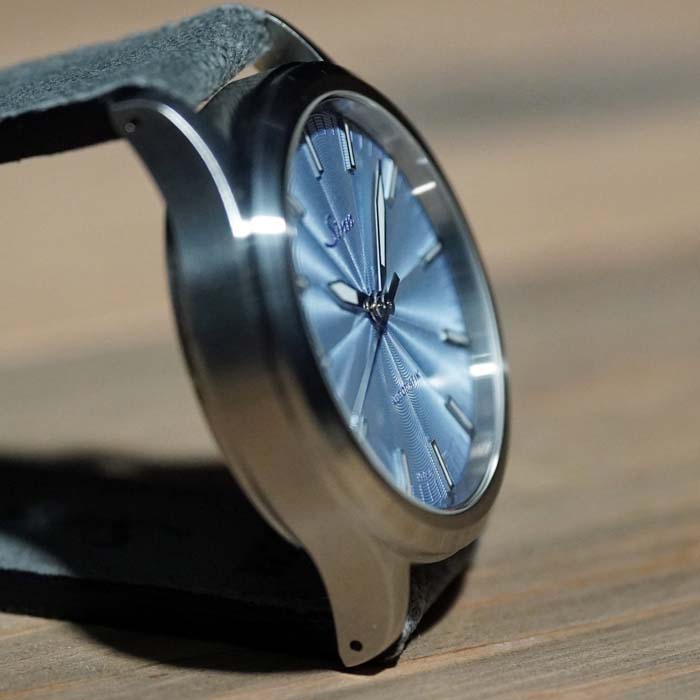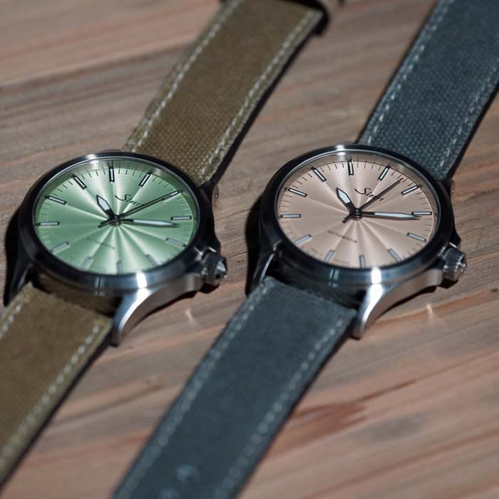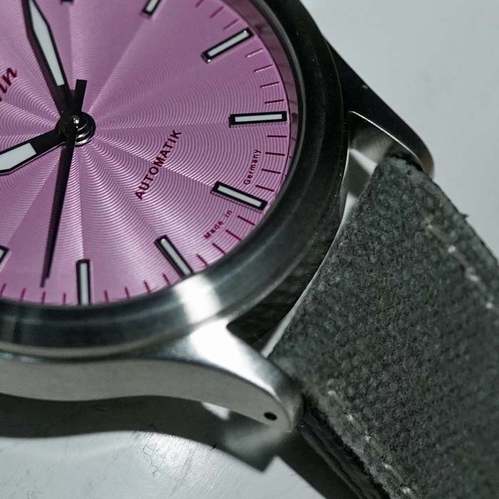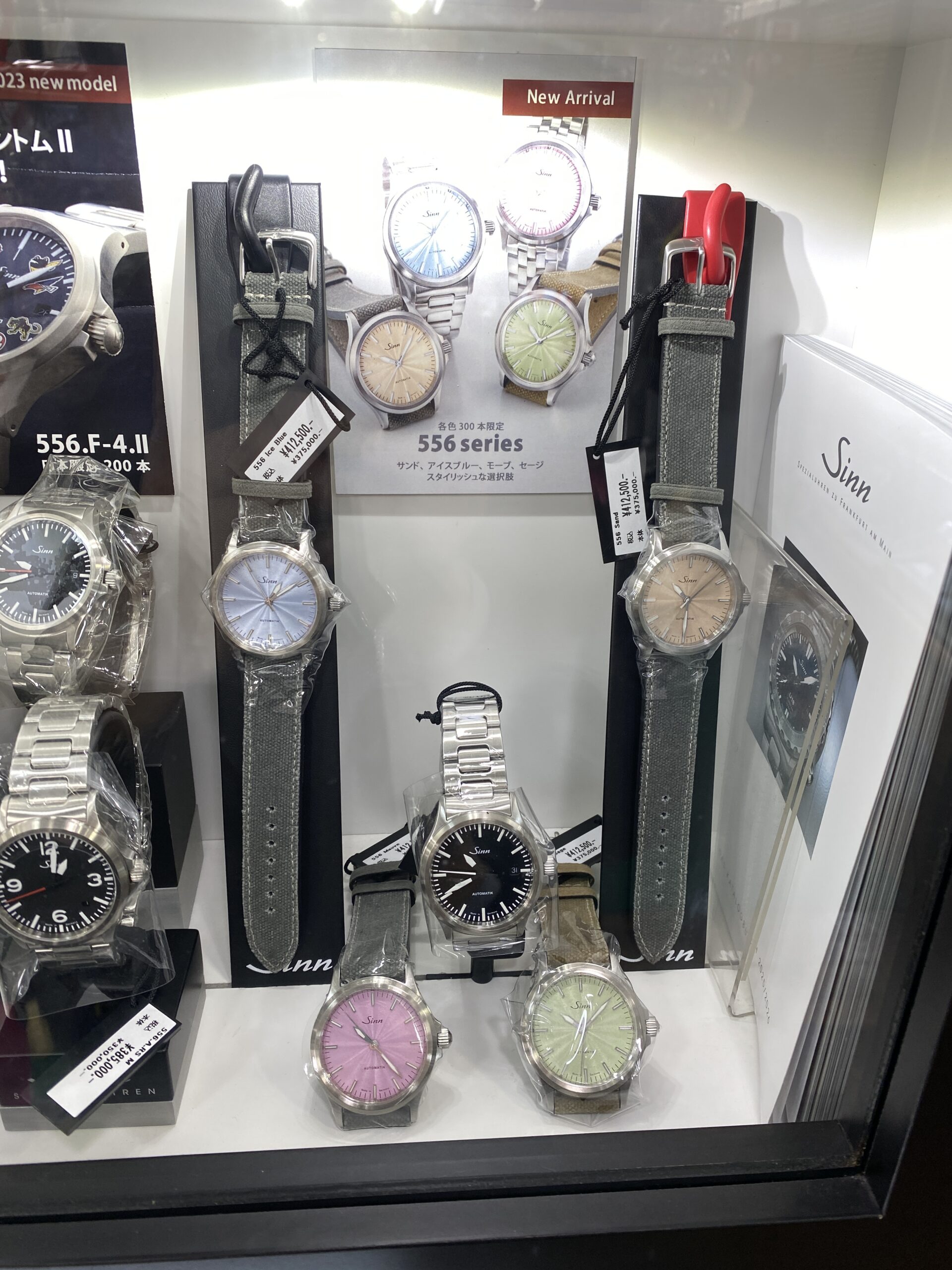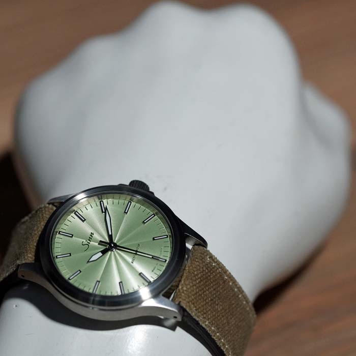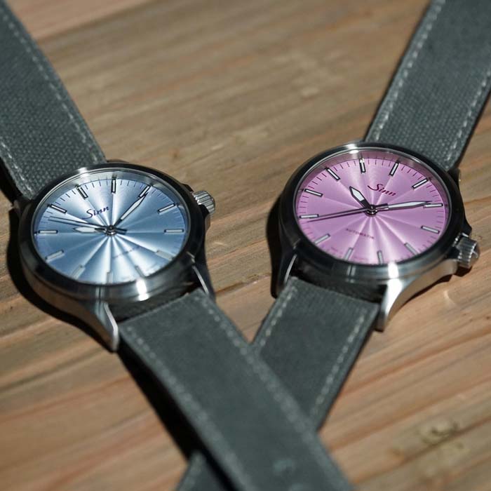 店主のつぶやき:ブラック文字盤が中心のパイロットウォッチを得意とするジン(SINN)はこの秋パステルカラー文字盤の556を4種類新たに発売した。それぞれが自然の色から着想を得たパステルカラーで男女共用で装着できるシェアーウォッチとして開発。ホワイト・ブラック文字盤だけですと、やや面白みがなく少し遊び心を燃やすアイテムとしてこれまでのジンユーザーにも試して欲しい逸品に仕上がっています。センターから広がったギョウシェ彫り文字盤がよりファッショナブルなカジュアルウォッチとなって、豊かな生活の一部が腕元に宿って見えます。今ですと(2025/12/1)4本揃ってご覧いただけますのでお手に取ってお確かめください!