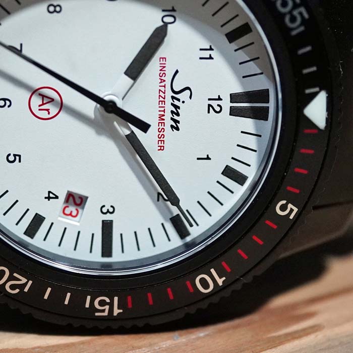 1997年、ジンは特殊部隊が計測機器として使用する時計を開発する展開に向けてあらたな一歩を踏み出しました。それがEZM(Einsatzzeitmesser / アインザッツツァイトメッサー)シリーズの開発です。アインザッツは、危険をおかす出撃・出動を意味し、ツァイトは時刻、メッサーは計測機器を意味します。つまり出撃用計測機器です。このコンセプトはパイロットクロノグラフの開発時から一貫する「使うためだけの時計」作りというフィロソフィーの延長上に見えてきた時計でした。成功する選択肢しか許されない特殊部隊の最高のパートナーとなるため、ヒューマンエラーを徹底的に排除したデザインと機能性が特徴です。
