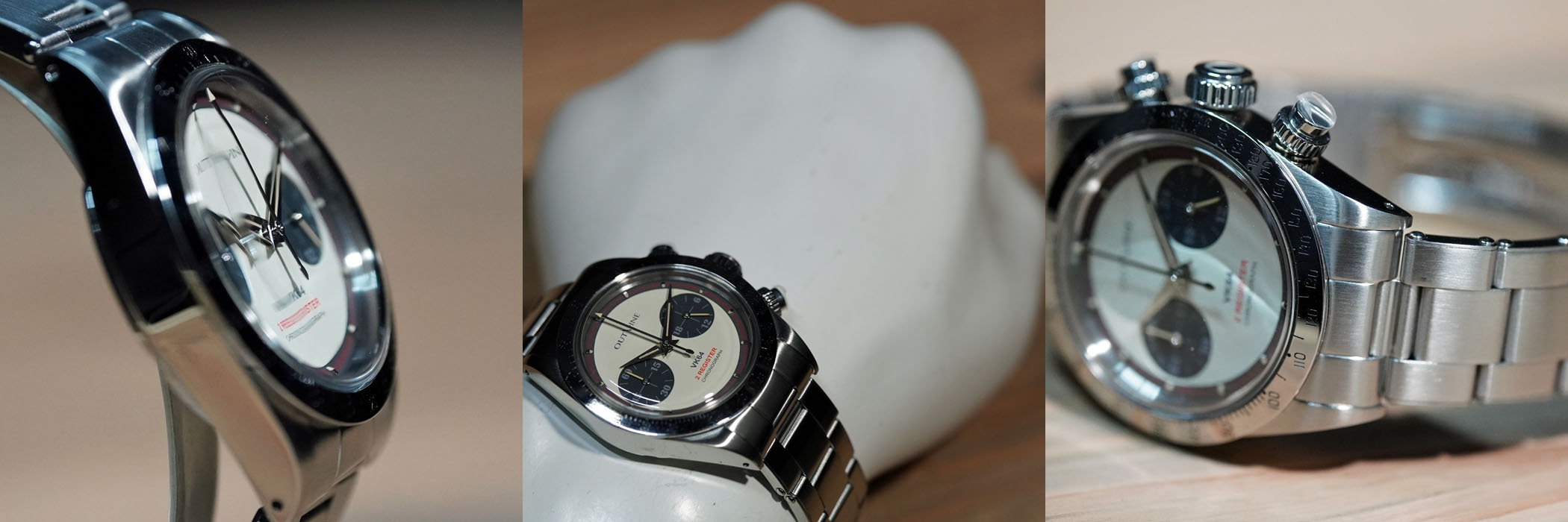 “ポールニューマン”の愛称で知られる1970年代の傑作クロノグラフをデザインモチーフに、二つ目のレトロ調メカ・クォーツクロノとして再現した